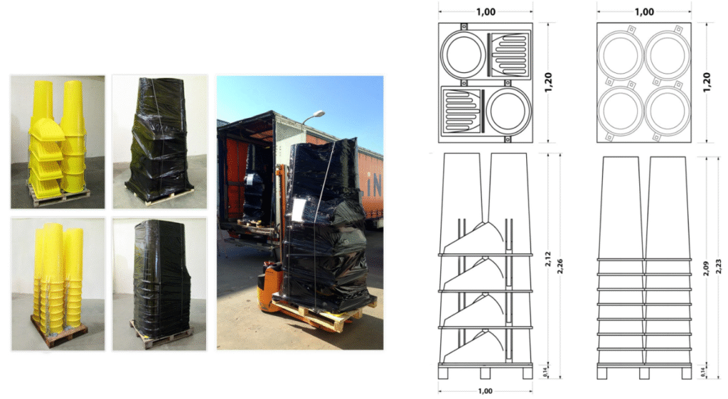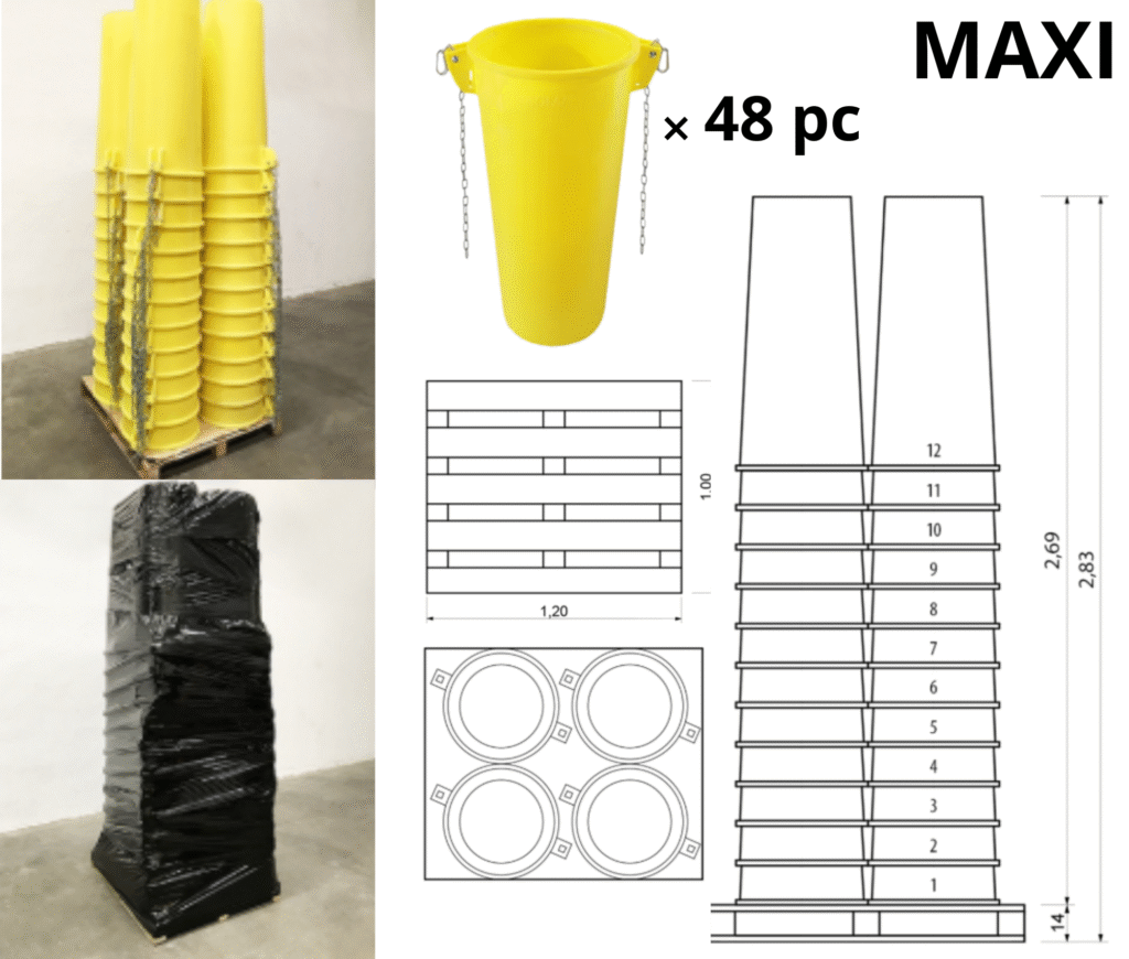 Dla elementu podstawowego oferujemy dwie metody pakowania: MAXI i MINI. Wybór odpowiedniej metody zależy od wymogów przewoźników i kraju docelowego, ponieważ różni operatorzy transportowi nakładają ograniczenia dotyczące wysokości przesyłek.