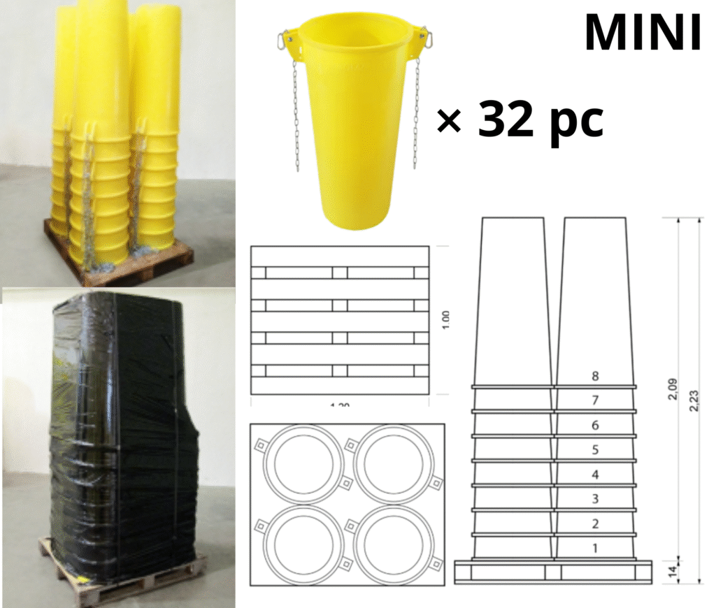 Dla elementu zasypowego oferujemy dwie metody pakowania: MAXI i MINI. Wybór odpowiedniej metody zależy od wymogów przewoźników i kraju docelowego, ponieważ różni operatorzy transportowi nakładają ograniczenia dotyczące wysokości przesyłek.